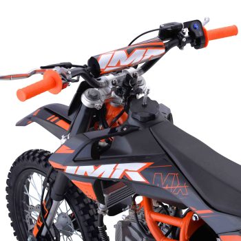 Prepárate para lo nuevo de IMR con la nueva MX 140 y nuevo diseño en color naranja flúor y negro! Renovado motor de 140cc con cambio manual de 4 marchas y arranque por patada! Espectacular chasis tubular de acero, horquilla invertida de 735mm y amortiguador trasero de 310mm con freno de disco delantero de 210mm y trasero de 190mm montado sobre ruedas con tacos de 17 y 14 pulgadas! Vuela en cada salto y terreno con 2 años de garantía, posibilidad de financiación o pago contra reembolso y envío en 24/48h a toda la península!